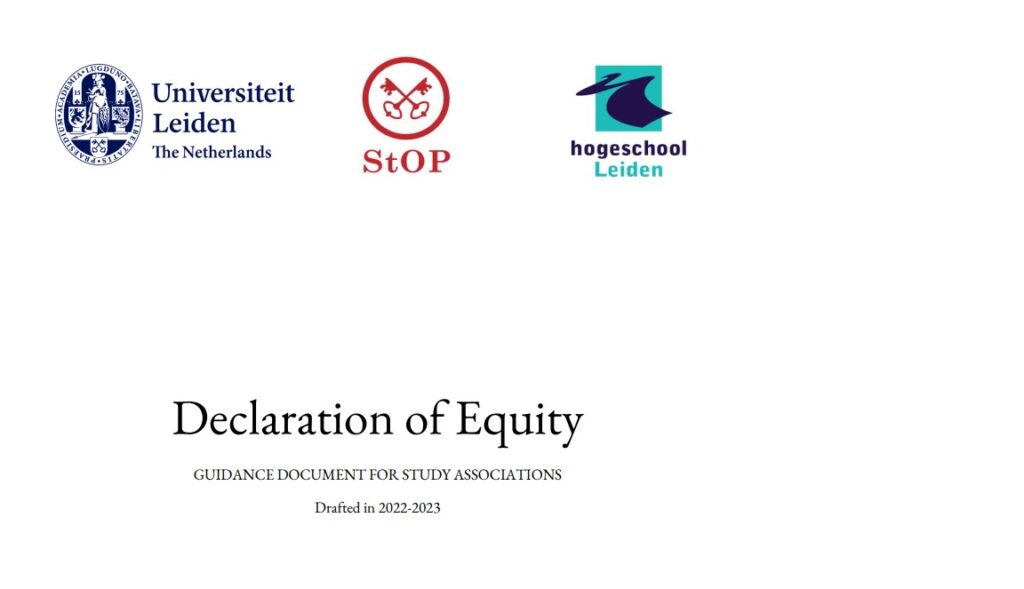 Onderaan deze pagina is de Declaration of Equity te vinden. Deze verklaring is samengesteld door de StOP (Studievereniging Overleg Platform), de Leiden Assessor’s Council (LAssO) en de Advisor to the Executive Board of the University of Applied Sciences (UAS Leiden). De verklaring is ondertekend door studieverenigingen van de Universiteit Leiden en de Hogeschool Leiden, waaronder T.W.I.S.T.